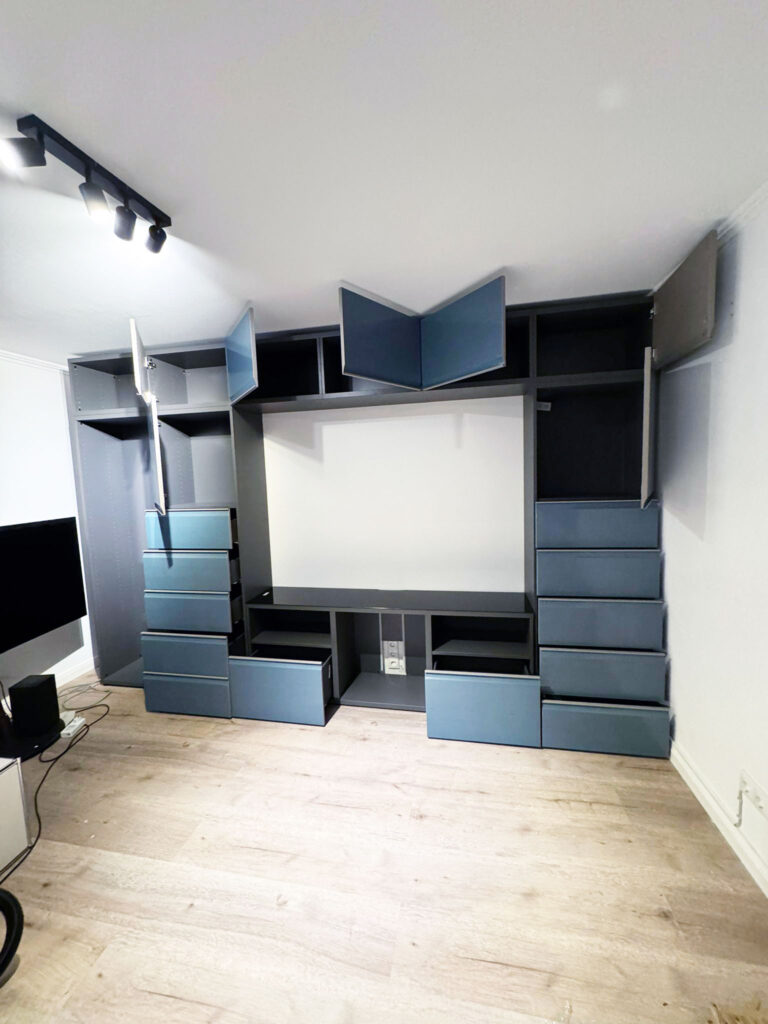 Unser Team erledigt jede Möbelmontage bei Ihnen Zuhause zuverlässig, fachgerecht, sicher. Auch komplexe Regalsysteme bauen wir akkurat und präzise auf.